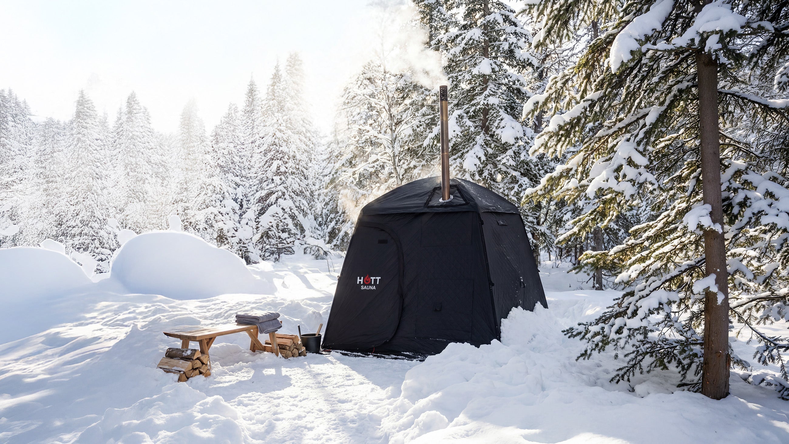 Hott Sauna är bastutält designade för dig som vill ta med bastuupplevelsen oavsett vart du ska. Med stora fönsterpartier, rejäla bärväskor och en slitstark konstruktion tål de nordiskt klimat, tuffa miljöer och upprepad användning. Varje detalj är vald för funktion, från snabb uppvärmning till enkel transport.