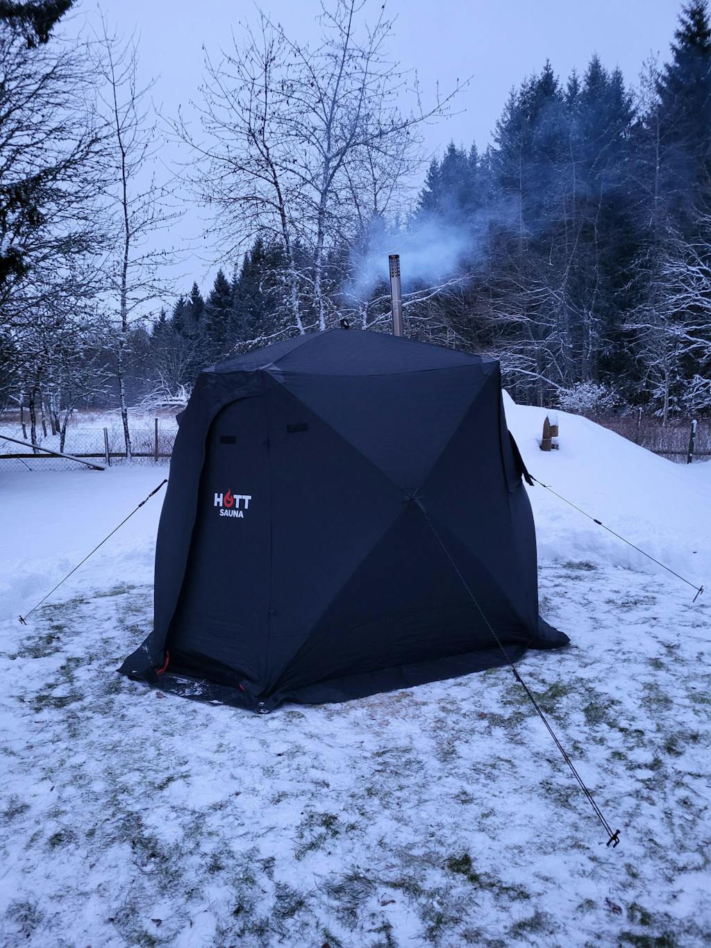 Hott Sauna is for those who want a sauna tent that truly lasts, not just looks good in pictures (which it also does). Our tent is designed to withstand harsh Nordic conditions, with a three-layer extra insulated fabric that really retains heat, even in below-freezing temperatures. The seams are reinforced where wear is greatest, and corners and fastenings have been given special care to endure regular use for many years to come.